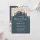 A vintage floral invitation for your spring or summer wedding rehearsal dinner with elegant cream, blush and white watercolor flowers, pastel greenery and an elegant navy blue background.