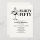 Make her 50th birthday unforgettable with this humorous vintage-style invitation that blends elegance and sass. The light off-white background and serif typography create a timeless look, while the whimsical cocktail glass illustration with stylish women inside adds a fun, flirty twist. Featuring the bold title “Flirty Fifty” on the front and “Come dance with me” on the back, this design is ideal for family members or loved ones organizing a joyful milestone celebration. Easily personalize every party detail to suit your event and create a keepsake-worthy invitation guests will love.