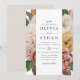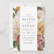 Invitations vintages de mariage fleuri avec vos détails mariages au centre du design encadré par une bordure de fleurs d'aquarelle et de feuilles dans les tons crème, jaune doré, rose mauve, bordeaux, marron et vert. Les invitations renversent vers un arrière - plan beige clair et solide. Les invitations uniques aux mariages floraux sont parfaites pour votre mariage dans le jardin. Conception coordonnée avec notre collection Vintage de mariages floraux du jardin.