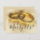 Carte d'officiant de mariage personnalisée avec un fond marron vintage, des anneaux de mariage à l'aquarelle et un modèle nous marier.