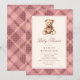 Invitation Vintage Pink Plaid Teddy Bear Baby Shower