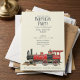 Invitation vos invités à une charmante fête d'anniversaire avec cette invitation de style vintage. Une illustration détaillée d'un train à vapeur rouge classique est présentée en bas, avec les détails de la fête clairement présentés ci-dessus. Ce design évoque un sentiment de nostalgie et de plaisir, parfait pour un anniversaire spécial. Personnalisez cette invitation avec le nom, la date, l'heure et l'emplacement de la personne d'anniversaire pour créer un faire-part unique pour votre événement.