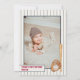 Jouez une fête de 1er anniversaire à domicile avec notre invitation Vintage Rookie Baseball thème! Célébrez votre petit rookie dès le premier anniversaire, avec cette invitation à thème de baseball rouge et bleu avec une chauve-souris de baseball, balle et gant en aquarelle, changer les bandes et le texte à votre couleur d'équipe. Ajoutez votre photo bébé à l'arrière.
