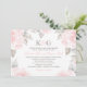 Le design élégant et romantique du paysage de style faire-part de mariage comprend un monogramme des noms de mariée et de mariée, des informations de cérémonie de mariage gris clair et d'étain encadré par une bordure de roses roses douces avec des feuilles verts / gris. Les fleurs ont un bel aspect aquarelle peint.