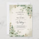 Ce design présente un agencement botanique magnifiquement rendu dans des teintes vertes à la sauge douce, évoquant un sens de l'élégance naturelle. Le feuillage luxuriant et les délicats accents floraux créent une esthétique charmante et intemporelle, parfaite pour une fête romantique. Les tons terreux et le style peint confèrent une atmosphère vintage à cette occasion spéciale.