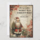 Transport yourself back in time with this charming vintage Christmas card featuring a classic depiction of Santa Claus. The aged paper style and intricate floral borders in deep red and black evoke a sense of nostalgia and timeless holiday spirit. Santa, with his jolly smile and iconic red suit, is shown carrying a Christmas tree and a wreath, ready to spread Christmas cheer. The heartwarming sentiment 'Have yourself a Merry Old Christmas' adds a vintage touch, making this card a perfect way to send warm wishes to family and friends. This design is ideal for those who appreciate traditional holiday aesthetics and classic Christmas imagery.