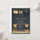 A charming preppy baby shower design featuring a sweet teddy bear dressed in a classic green plaid jacket and bow tie. Above the bear, a delicate clothesline displays tiny baby clothes and shoes, creating a nostalgic storybook nursery scene. The deep navy background and subtle tartan border add a refined, vintage-inspired touch that feels both elegant and playful. Perfect for a stylish baby shower celebration with a classic preppy aesthetic.