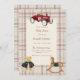 Celebrate the upcoming arrival of your little one with this charming vintage-inspired baby shower invitation. Featuring a classic red toy car graphic and a cozy plaid background, this design evokes a sense of nostalgia and warmth. The adorable teddy bear and rocking horse add a touch of playful innocence, perfect for welcoming a baby boy or girl. This invitation includes a convenient QR code RSVP on the back, making it easy for your guests to respond. The distressed texture and rustic charm make it a unique choice for a memorable baby shower celebration.
