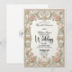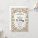 Set the tone for a romantic union with this Victorian-inspired design, featuring soft pastel florals and elegant swans framed by an ornate architectural border.This design features a sophisticated formal layout anchored by a symmetrical border that simulates the look of 3D carved stone. Swirling acanthus leaves and filigree in beige and cream tones create a classical frame around the central text. At the header, two white swans curve their necks to form a delicate heart shape, nestled among soft pink roses, tulips, and sage green foliage. The typography hierarchy combines an elegant black calligraphy script for names with a traditional serif font for event details, ensuring high readability against the clean cream background.
