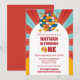 Célébrez le premier anniversaire de votre petit bout avec style grâce à notre Invitation Anniversaire Enfant 1ère année Vinyl Groovy Rouge Rétro. Cette invitation vibrante présente un fond rayé bleu et rouge dynamique, créant instantanément une atmosphère festive et joyeuse pour la célébration. Au centre, un ballon de fête rétro ajoute une touche de nostalgie, capturant parfaitement l'essence d'une fête d'anniversaire amusante et funky. Les couleurs rouges, bleues et orange audacieuses créent un design animé et accrocheur qui fera que vos invités attendront avec impatience l'événement.