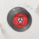 Invitation pour une soirée rétro avec texte personnalisable et couleur d'étiquette changeable avec des étoiles sur fond de disque vinyle juke-box. Idéal pour les anniversaires rétro, mariages, DJ, enterrements de vie de garçon ou de jeune fille et plusieurs autres occasions.