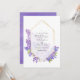 Aquarelle violet - faire-part de mariage floral lilas avec un cadre géométrique à base d'herbier doré personnalisable selon vos spécificités. Idéal pour un thème ou un mariage de jardin. Le code QR au verso dirige vers votre site mariage où les gens peuvent en savoir plus et rsvp.