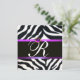 Invitation VIOLET NOIR BLANC FOURRURE ZÈBRE MONOGRAMME, améth