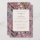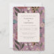 Elégante invitation de mariage avec un motif de fleurs rétro dessiné à la main. Fleurs de style vintage sur un arrière - plan mauve violet.
