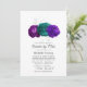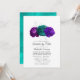 Invitation violette et florale turquoise à la nuptiale ou au baby shower avec des accents de violet personnalisable à vos spécificités d'événement.