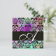 INVITATION VIOLET TEAL AQUA BLEU NOIR DAMASK MONOGRAMME