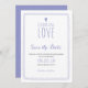 DE LA COLLECTION DE MARIAGES LOVE : Whimsical Doodle Frame Enregistrer la Date avec "Celebrating Love", coeur fantaisiste et design d'évitement à pétoncles. La couleur est VIOLET. Pour toute question sur les changements de conception personnalisés par le concepteur indépendant, veuillez envoyer un courriel à paula@labellarue.com AVANT de customiser ou de passer une commande.