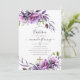 Invitation de baptême violet et violet avec élégante typographie manuscrite conçue pour être rapidement et facilement customisée aux détails de votre événement.