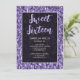 Personnalisez et customisez l'invitation fausse moelleuse Sweet 16. Collection de sweets sixteens par PLdesign. Parties scintillant violette faux brillant scintille. Belles parties scintillant brillantes violet girly glamour brillant. Photo de parties scintillant violet mousseux ! Faux scintille !