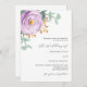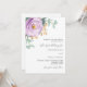 Un arrière - plan blanc. Décoré de violet, de fleurs violettes, de fleurs roses et de feuilles d'eucalyptus vert aquarellés, de sprigs, de verdure et d'un faux sprigs d'or. Personnalisez et ajoutez vos noms et détails.