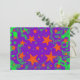 Invitation avec un arrière - plan tourbillonnant violet et vert parsemé d'étoiles magiques, brillantes orange et vert. Un design personnalisable violet, vert et orange pour vous permettre d'ajouter vos propres textes, images et idées. Le texte peut facilement être modifié à l'aide du modèle fourni ou cliquez sur le bouton "Customiser" pour effectuer d'autres modifications. Enveloppe correspondante et timbre postal disponible. Créé à l'aide de techniques numériques par Jess Perry.