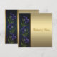 Élégantes cartes d'invitation de mariage avec des violettes de gentiane cristallines violettes et une bordure dorée pour la célébration des 50 ans de mariage. Personnalisez le recto et le verso.