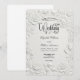Définissez le ton de votre union formelle avec ce design classique, présentant un effet de faux bas-relief imprimé qui imite l'apparence du plâtre sculpté. Ce design capture l'essence de l'ère Régence à travers une palette sophistiquée « blanc sur blanc ». L'œuvre d'art présente une reproduction numérique d'une sculpture baroque, mettant en vedette un ange jouant du violon au milieu d'une bordure de grandes roses épanouies, rendues dans des nuances de crème, de beige et de gris doux pour créer un effet d'ombre 3D convaincant. Le texte est présenté en calligraphie formelle noire nette avec des fioritures de cœur décoratives pour un contraste élevé et une lisibilité maximale. Il s'agit d'une image imprimée plate avec un effet de gaufrage faux, et non d'un matériau ou d'une texture réellement en relief.