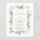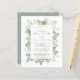 Une alternative à petit budget de format 4,5” x 5,6”. Disponible sur un papier cartonné SEMI-BRIOCHE de 110 lb qui est l'option par défaut (plus épais pour les invitations), OU sur un papier de grammage inférieur SATINÉ 80 lb (idéal pour les enclos). Les enveloppes sont une option supplémentaire et sont légèrement plus grandes que la taille de la carte. Pour les moments où vous ne pouvez pas être ensemble en personne, une fête de douche de mariage virtuelle est une bonne alternative. Ce design moderne a une bordure d'élégant feuillage vert sauge et or en aquarelle, autour d'une typographie stylée et simpliste que vous pouvez facilement personnaliser. Vous pouvez également modifier les couleurs du texte et de l'arrière-plan de chaque côté si vous le souhaitez via l'option Personnaliser davantage.