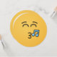 Un émoticône sifflant avec des yeux souriants et une note musicale.
