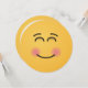 Un visage souriant, avec des yeux souriants et des joues roses.