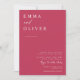 This invitation features a clean and simple block serif typography font and calligraphy in a viva magenta background. The simplicity and clean design of this invitation works well with all wedding themes and definitely a great addition to your wedding. Just customize the names and wording in a few easy steps and personalize the invitation card with your photo of the happy couple and replace the QR Code with yours to the back of the invitation to give your invitation a nice personal touch.