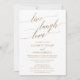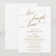 Cette carte élégante avec calligraphie dorée et la phrase "live laugh love" est parfaite pour une fête après un mariage intime en automne. Le design neutre présente une carte minimaliste ornée d'une typographie romantique et fantaisiste en faux-foil doré. Les cartes de RSVP sont vendues séparément.