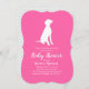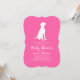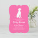 Inclure le grand frère ou la soeur en fourrure bébé dans la célébration avec cet adorable design de baby shower Vizsla! Parfait pour un amoureux du chiot avec un bébé en route. Le Vizsla est à côté d'une adorable calèche vintage. Le rose en fait un endroit parfait pour une petite fille en route !