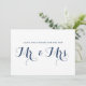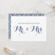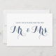 Carte plate de mariage amusante et fantaisiste avec calligraphie moderne bleue marine. Des articles similaires sont disponibles. Vœux pour les nouveaux M. et Mme