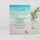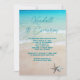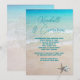 Mariage décontracté sur la plage, ou renouvellement de vœux, invitation avec des polices modernes et des modèles faciles. L'eau de l'océan bleu-vert et le sable de la plage avec deux étoiles de mer constituent l'image de fond pour le texte personnalisé, présenté sur des cartes plus petites de format 4x6. Les prénoms de la mariée et du marié sont en écriture manuscrite en haut. Toutes les informations sur la cérémonie, la réception et la réponse (si vous le souhaitez) sont ajoutées sous forme de paragraphe. Un moyen simple, peu coûteux et magnifique d'inviter la famille et les amis proches à célébrer un événement spécial.