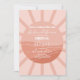Célébrez la future mariée avec notre Invitation de la douche nuptiale Voici le Soleil. Dotée d'un design éclatant et d'une typographie joyeuse, cette invitation capte l'essence de la joie et de l'anticipation alors que la mariée entreprend son voyage vers la félicité mariée. Que vous planifiez une aventure ensoleillée en plein air ou une réunion intérieure confortable, notre invitation promet une douche nuptiale radieuse et mémorable remplie d'amour et de rire. Notre Invitation de la douche nuptiale présente un motif de soleil captivant associé à une typographie lumineuse et joyeuse qui respire la chaleur et le bonheur. Le design dynamique donne le ton d'un événement festif et festif, invitant les invités à se prélasser dans la lueur du bonheur et de l'excitation de la future mariée. Faites de l'invitation une invitation personnalisée en fonction de la personnalité de la mariée et de vos plans de douches nuptiales en la customisant avec des détails personnalisés tels que la date, l'heure et le lieu de l'événement. Que vous soyez l'hôte d'un brunch sous le soleil du matin ou d'une soirée au coucher du soleil, notre invitation vous permet de customiser les informations qui correspondent à votre vision de la douche nuptiale, en vous assurant que les invités ont tous les détails essentiels dont ils ont besoin pour assister. Célébrez la future mariée avec notre Invitation de la douche nuptiale Voici le Soleil. Dotée d'un design éclatant et de détails personnalisables, cette invitation promet une fête éclatante et joyeuse pour tous. Choisissez entre des options numériques ou imprimées pour une distribution facile. Achetez maintenant et faites de la douche nuptiale un événement inoubliable!