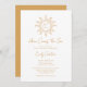 Célébrez l'arrivée de votre petit soleil avec cette chaleureuse et charmante invitation baby shower "Voici le Fils". Doté d'une illustration de soleil rayonnante dessinée à la main avec un script élégant et une typographie serif, ce design donne un ton joyeux à votre célébration. La palette jaune doré ajoute une touche fantaisiste mais sophistiquée, parfaite pour un rassemblement d'inspiration chute ou boho. Personnalisez avec vos détails d'événement pour créer un souvenir que vos invités adoreront.