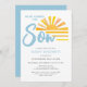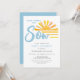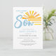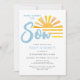 Prévoyez-vous un baby shower pour un garçon ? Cette mignonne invitation au baby shower sur le thème du soleil présente le texte "Here Comes The Son" dans une typographie bleue stylisée avec un lever de soleil aquarelle dans les tons jaune. Facile à personnaliser. Aquarelle originale © Michele Davies.