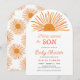 Style bohème moderne tendance "voici le fils" baby shower garçon invitation en forme d'arc avec un soleil levant avec un petit coeur et un script rétro.