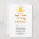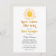 Invitation Baby Sprinkle avec un soleil aquarelle avec le texte rétro "voici le fils". Customisez avec vos informations pour que la mère soit. Cliquez sur "cliquer pour customiser plus loin" pour modifier le style, la taille ou la couleur de la police.