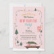 Ranimer la joie de Noël passé ! Transportez-vous dans le temps avec cette tradition familiale amusante invitation personnalisée de fête de Nouvel An sur le thème d'une voiture rose vintage de Noël. Des lumières de Noël pendent au sapin de Noël et s'enroulent autour de la carte de vacances avec des sapins de Noël, une maison rose et des arbres. Plongez dans la magie du charme d'antan et créez des souvenirs impérissables avec vos proches ! Conception et illustration de Moodthology Papery.