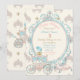 Voiture à thème de princesse de conte de fée avec plumet, soulier sur un coussin et motif de citrouille dans des tons de couleur ivoire, rose et bleu aqua.