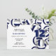 Cette invitation à la fête à thème de volleyball comprend des volleyballs en cascade bleu marine, gris et blanc aux bords droit et supérieur sur l'avant et un seul cluster couvrant l'arrière de l'invitation - customiser les détails de la fête en coordonnant les couleurs sur un arrière - plan blanc - par katz_d_zynes