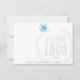 Un carte pour notes plat personnalisé qui affiche le logo de votre entreprise s'estompe en arrière-plan avec un nom et un titre de travail vers le bas.