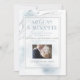 Ajoutez votre photo à cette belle Invitation de la Fête de l'Engagement - Montrer une délicate aquarelle bleue poussiéreuse combinée à une branche de saule dessinée à la main dans le gris arctique qui fait honneur au sommet de cette invitation de la Fête de l'Engagement. Un double cadre en étain assez translucide pour voir la branche et l'aquarelle derrière, recouvre vos détails fiançailles écrits dans une police contemporaine. Conception créée pour BarefootBride™ par © WhimsicalArtwork™ Personnaliser texte, style de police, couleur et taille. Nous avons créé ce modèle pour vous faciliter la personnalisation avec vos propres informations. Il fait partie d'une suite de papeterie Mariage complète avec mariage, baby shower et autres articles de papeterie d'événements correspondants.