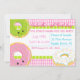 Vous voulez rater cette fête ! ! Comme c'est doux ! Commencez votre fête avec cette mignonne invitation d'anniversaire. Cette invitation a un arrière - plan rose et blanc en vichy. Il y a trois beignets aux coins l'un avec glaçage vert citron, rose l'autre blanc avec des arroses. Il y a un rectangle blanc de l'autre côté du centre avec une bordure rayée vert citron. Personnalisez avec vos informations de fête dans le centre. Customisez avec des polices colorées n'importe quel style que vous aimez.