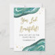 Ce panneau de mariage élégant et moderne dit "vous êtes belle" et présente des pierres de géode de teal à l'aquarelle, avec une typographie en or faux et des éclaboussures.