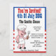 Vous êtes invité à un pique-nique du 4 juillet avec un cochon de dessin animé drôle. Mettez tout le monde dans l'ambiance de la fête avec cette invitation cool pour la fête de l'Indépendance. C'est idéal pour n'importe quel barbecue familial du 4 juillet ou rôti de porc et présente un chef cochon de dessin animé souriant. Au dos se trouvent les étoiles et les bandes. Rouge, blanc et bleu colorés.