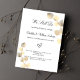 Un arrière - plan blanc décoré d'eucalyptus dorés, sprigs. Personnalisez et votre nom et les détails de la cérémonie. Retour : arrière - plan d'or.