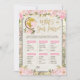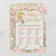 Faites divertir vos invités à votre baby shower avec des jeux de baby shower amusants et interactifs. Le design féminin présente une carte vintage arrière - plan, des fleurs rose vif et un joli globe